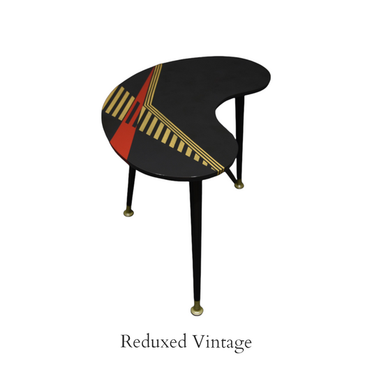 Side table, plant table, MCM, handpainted, geometric pattern, dansette legs.
