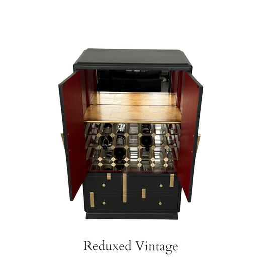 Wine Bar, art deco, black and gold, gold leaf, wine cupboard, drinks cupboard, geometric design