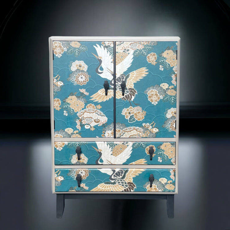 Cultural Fusion: Authentic Malaysian Fabric Vintage Decoupage Tallboy